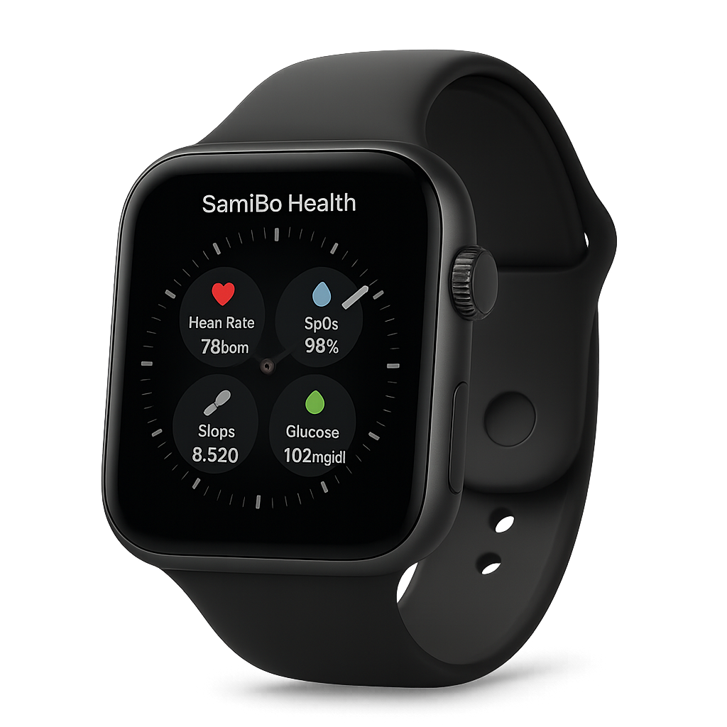 SamiBo is a multimodal diagnostic platform that unifies biosensors (blood & urine), wearables (heart rate, HRV, steps, sleep), and imaging (X‑ray/CT/MRI/Skin) into one explainable assessment. AI models estimate internal biomarkers from non‑invasive signals, auto‑select the best source via BLE routing, and generate a multi‑page clinical‑style report. A hybrid calibration layer lets users (or clinics) periodically anchor AI estimates to verified lab results, improving accuracy over time.